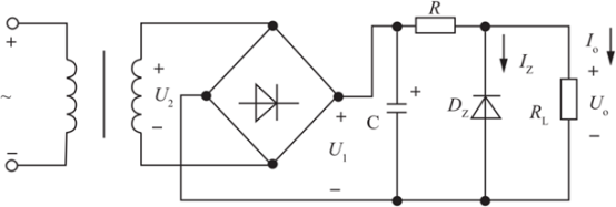 整流滤波电路如图所示,已知U1=30V,Uo=12V,R=2kΩ,RL=4kΩ,稳压管的稳定电流Izmin=5mA与Iz