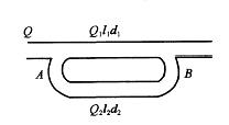 有一管材、管径相同的并联管路(见图),已知通过的总流量为0.08m3/3,管径d1=d2= 200mm,管长l1=400mm,l2=800mm,沿程损失系数λ1=λ2=0.035,求管中流量Q1和Q2?