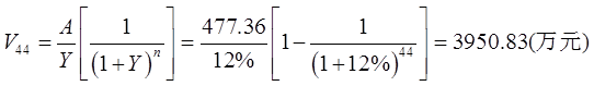 (1)求取未来44年的净收益的现值之和: