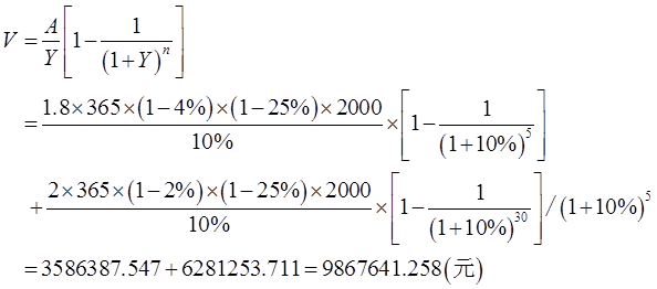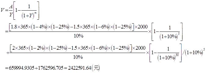 (2)①由题意,该写字楼的年净收益=1.5×(1-6%)×2000×365×(1-25%)=77.20(万元);