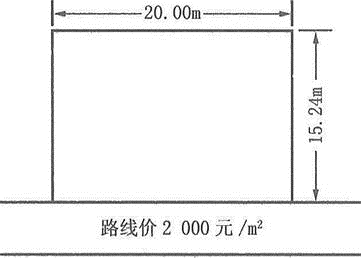 下图是一块一面临街的矩形土地,临街深度为15.24m(即50英尺),临街宽度为20.00m,路线价(土地单价)为2000