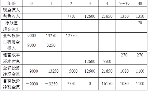 ①第5~40年的年租金收入:3000×5000×90%=1350(万元);