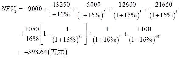 ②第5~40年的年运营成本:1350×20%=270(万元);