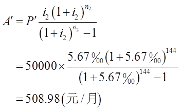 (5)因为从第4年起每月应付商业贷款A3=A2-A′=1349.62-508.98=840.64(元/月),所以从第4年初起每月应付住房抵押贷款额A1+A3=764.99+840.64=1605.63(元/月)。