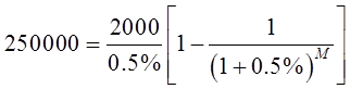 设剩余M个月需要偿还25万元,则有:
