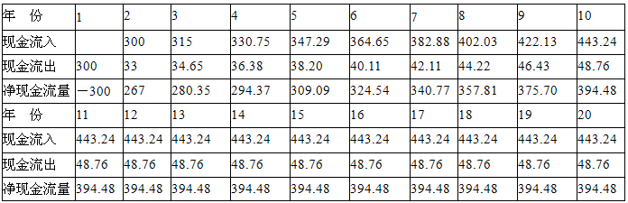 计算题 某投资者拟以一次性付款的方式购买价格为1200万元的一出租公寓20年的经营收益权,用于出租经营。第一年投入装修费300万元并完成装修;第二年开始出租,当年的月租金收入为25万元,经营费用占租金收入的11%;此后一段时期内,租金收入和经营费用均以每年5%的比例递增;从第11年起,租金收入和经营费用稳定在第10年的水平上。若投资者期望的目标收益率为13%,贷款利率为8%,折现率为10%。试列出该项目的现金流量表,计算财务净现值和财务内部收益率,并判断该项目是否可行(假设购楼投资发生在年初,其他收支均发生在年末)。