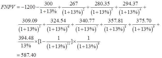 (2)用目标收益率13%计算财务净现值FNPV: