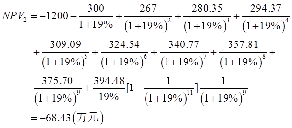②再设i2=19%,求NPV2: