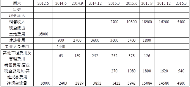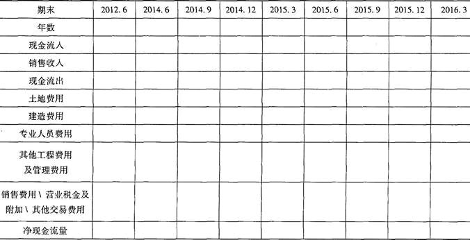 根据表6-6,可计算建造费用、其他工程费用及管理费用、销售收入、销售费用、营业税金及附加、其他交易费用的具体进度:
