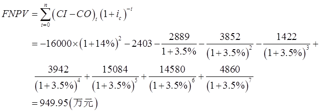 (2)投资收益率为14%是年收益率,换算成季度收益率为3.5%,计算时点为2014年6月,则该项目的财务净现值: