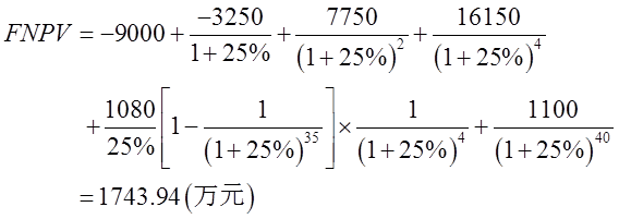 ②第5~40年的年运营成本:1350×20%=270(万元);
