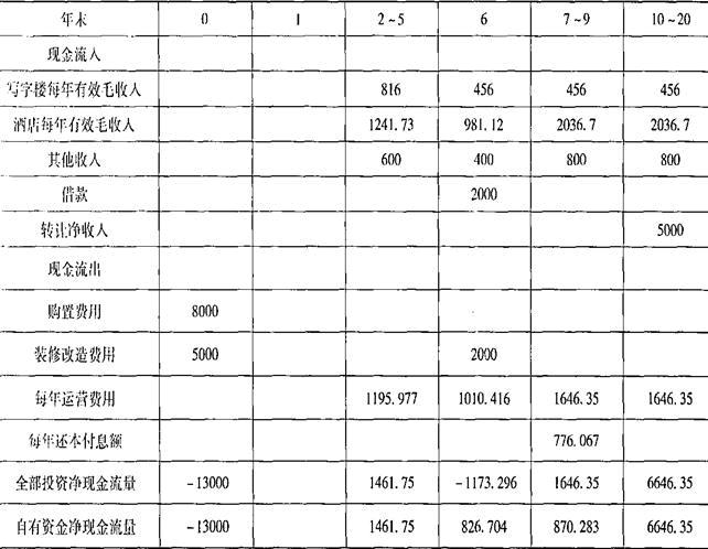 ④第20年末转让净收入=5000(万元)。列自有资金现金流量表(单位:万元)如下: