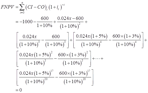 计算题 甲公司承租了一栋建筑面积为10000m2的旧商业大楼,承租期为20年,前3年租金保持不变,每年为600元/m2,以后每年递增3%。该公司用1年时间,将该商业大楼装修改造成共有400个摊位的专业市场,装修改造费用共1000万元。装修改造完成后,公司计划将摊位出租,按年收取租金,前2年租金保持不变,以后每年递增5%。如果专业市场的运营费用为摊位年租金的40%,甲公司目标收益率为10%,装修改造费用在第1年年初一次性投入,其他收支均发生在年末(不考虑空置损失),请计算该公司达到目标收益率时,前2年平均每个摊位的最低年租金。