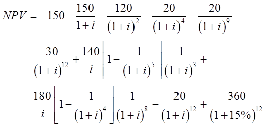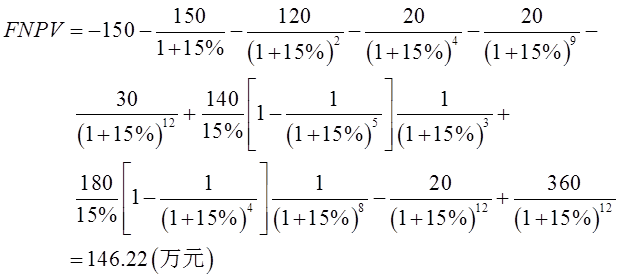 FIRR=i1+NPV1/(NPV1+|NPV2|)×(i2-i1)=20%+1%×44.98/(44.98+28.17)=20.61%