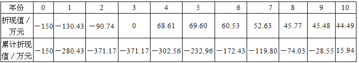 动态投资回收期=累计折现值开始出现正值的年数-1+(上年累计折现值的绝对值/当年净现金流量的折现值)=10-1+28.55/44.49=9.64(年)