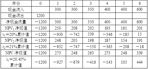 (2)根据(1),可得此投资项目的内部收益率是20.45%,据此可计算此投资项目的动态投资回收周期: