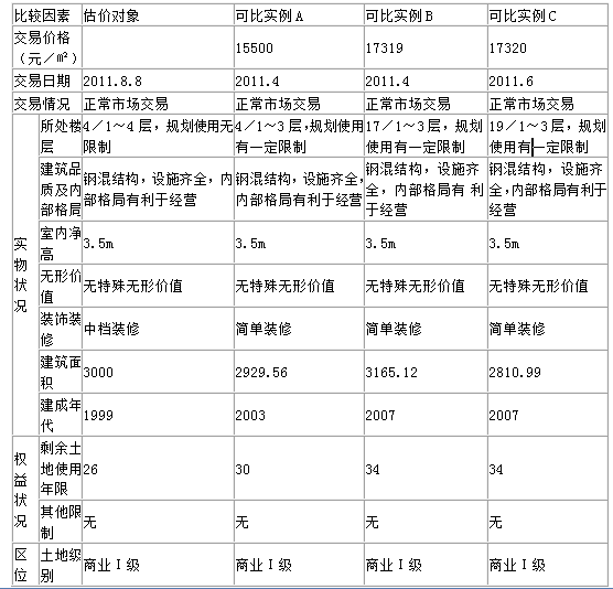 7.估价技术报告比较法比较因素说明表中,楼层应该是区位因素,放在实物状况中错误;