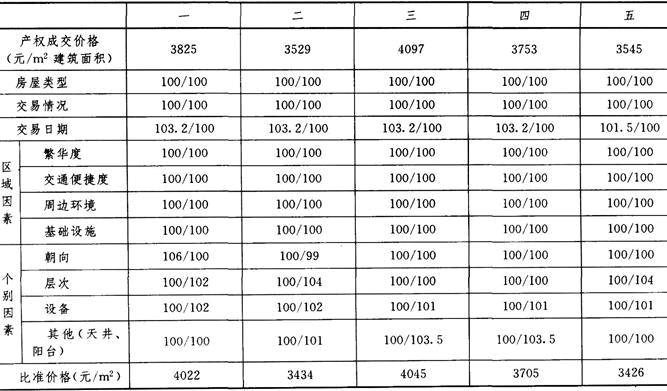 (3)错误:在比较因素分析时,第四个可比实例的个别因素中“层次”项,修正为“100/100”错误。