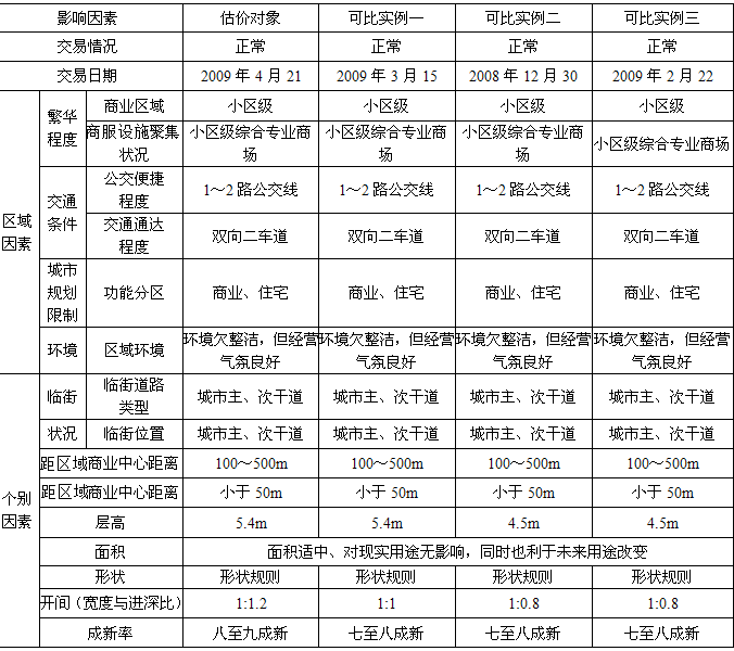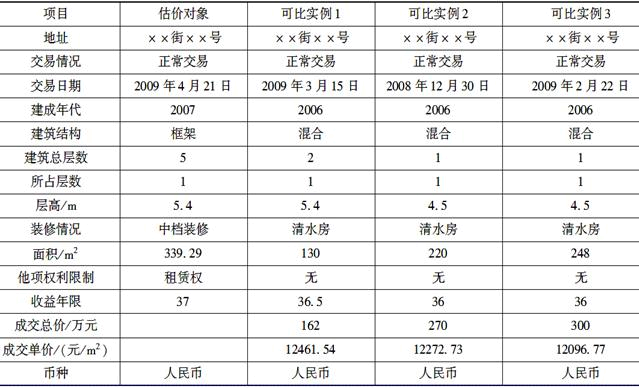 理由:采用市场法进行测算应针对估价对象的功能及特点,对与估价对象在同一区域内的类似房地产项目进行市场调查和比较分析,从中选取可比性较强的房地产项目。可比实例一与估价对象及可比实例二、三的规模相差较大,不宜选为可比实例。