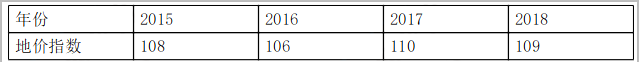 下表为某城市住宅用地2015-2018年间环比地价指数情况,某比较案例住宅用地2016年成交价为1500元/平方米,该案