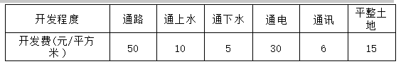 某城市工业用地基准地价定义设定为土地开发程度为“五通一平”,其修正值如下表。现有一宗工业用地坐落在四级地内,达到“三通(