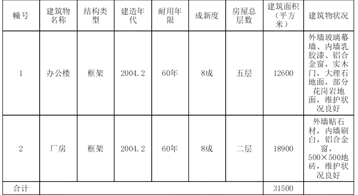 除上述两幢建筑物外,宗地上有水泥道路、围墙及绿地等构筑物,构筑物具体数量不详。