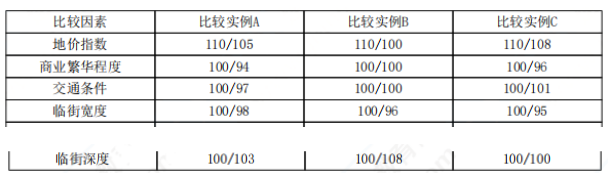 根据已得到的各比较因素条件指数,计算各比较因素的地价修正系数如下表: