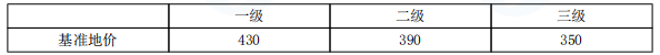 根据××县人民政府《关于××县城区商业、住宅及全县工业用地基准地价的通告》,××县城区工业用地基准地价划分为三个级别,具体地价详见下表。