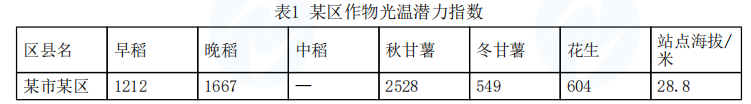 不定项选择题 通过查询《农用地质量分等规程》(GB/T28407-2012)附录D.38,得到某区作物光温潜力指数,如表1所示。