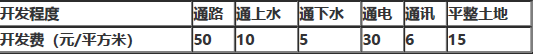 某城市工业用地基准地价定义设定为土地开发程度为“五通一平”,其修正值如下表。现有一宗工业用地坐落在四级地内,达到“三通(
