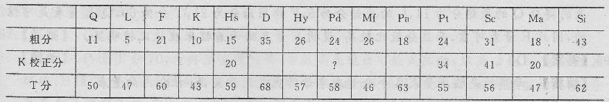 不定项选择题 下面是某求助者的MMPI测验结果。