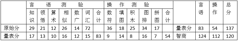 下面是某求助者的WAIS-RC的测验结果: