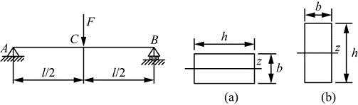 矩形截面简支梁,梁中点承受集中力F。若h=2b。分别采用图(a)、图(b)两种方式放置,图(a)梁的最大挠度是图(b)梁
