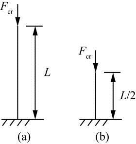 一端固定另端自由的细长(大柔度)压杆,长为L(图a),当杆的长度减小一半时(图b),其临界载荷Fcr是原来的( )。