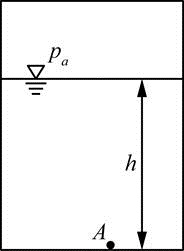密闭水箱如图所示,已知水深h=1m,自由面上的压强p0=90kN/m2,当地大气压强为pa=101kN/m2,则水箱底部A点的真空度为( )。