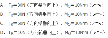 单选题 在图示平面力系中,己知:力F1=F2=F3=10N,a=1m,力偶的转向如图所示,力偶距的大小为M1=M2=10N·m。则力系向O点简化的主矢、主距为( )。