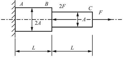 变截面杆AC受力如图。己知材料弹性模量为E,杆BC段的截面积为A,杆AB段的截面积为2A。杆C截面的轴向位移是( )。