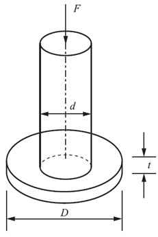 直径d=0.5m的圆截面立柱,固定在直径D=1m的圆形混凝土基座上,圆柱的轴向压力F=1000kN,混凝土的许用切应力[