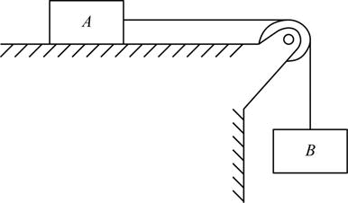 物块A质量为8kg,静止放在无摩擦的水平面上。另一质量为4kg的物块B被绳系住,如图所示,滑轮无摩擦。若物块A的加速度a