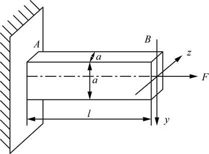 如图所示,正方形截面悬臂梁AB,在自由端B截面形心作用有轴向力F,若将轴向力F平移到B截面下缘中点,则梁的最大正应力是原