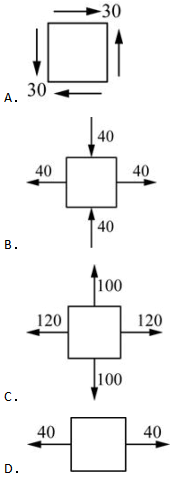 单选题 下图单元体处于平面应力状态,则图示应力平面内应力圆半径最小的是( )。