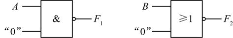 图示逻辑门,F1、F2的输出分别为( )。
