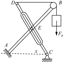 固定在杆AB上的销钉E置于构件CD的光滑直槽内,如图所示。已知:重物重Fp,用绳绕过光滑的销钉B而系在点D,AE=EC=