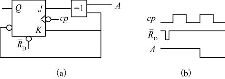 图(a)所示电路中,复位信号、数据输入及时钟脉冲信号如图(b)所示,经分析可知,在第一个和第二个时钟脉冲的下降沿到来时,
