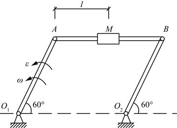 四连杆机构如图所示,已知曲柄O1A长为r,AM长为l,角速度为ω,角加速度为ε。则固连在AB杆上的物块M的速度和切向加速度的大小为(  )。