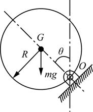均质圆柱体半径为R,质量为m,绕对纸面垂直的固定水平轴自由转动,如图所示。当圆柱体转动到θ=90°位置时,其角加速度是(  )。