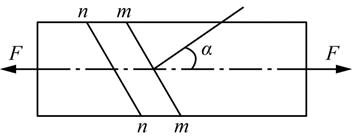 图示拉杆外表面上的斜线m-m和n-n互相平行,斜线的法线与轴线夹角为α,在力F作用下拉杆发生变形,变形后斜线m-m和n-n相对其原始位置的变化是(  )。