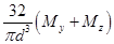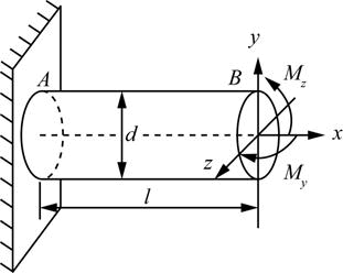 图示圆截面悬臂梁的直径为d,梁的自由端承受作用在两个互相垂直平面内的弯矩My、Mz,则该梁的最大正应力为(  )。