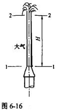 单项选择题 图6-16所示一高压喷嘴,喷嘴出口断面1-1的平均流速为10m/s,喷至2-2断面的平均流减少为1m/s,不计水头损失,则喷射高度H为( )m。