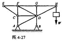 单项选择题 不经计算,通过直接判定得出图4-27所示桁架中内力为零的杆数为( )。
